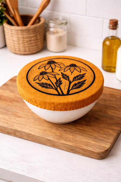"Black-Eyed Susans" Small 6.5' Bowl Cover-Bronze Cotton/Linen