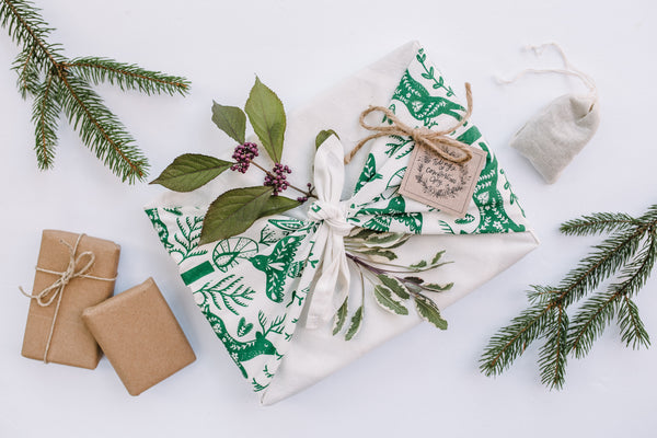 Winter Day Reusable Furoshiki Gift Wrap GREEN