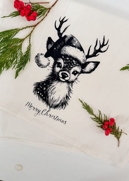 Holiday Woodland Fawn Tea Towel