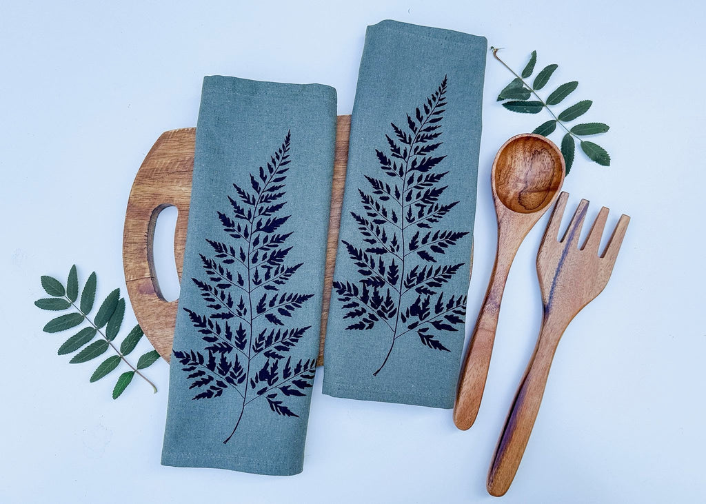 Leafy Fern-Forest Green Linen Napkin Set of Two