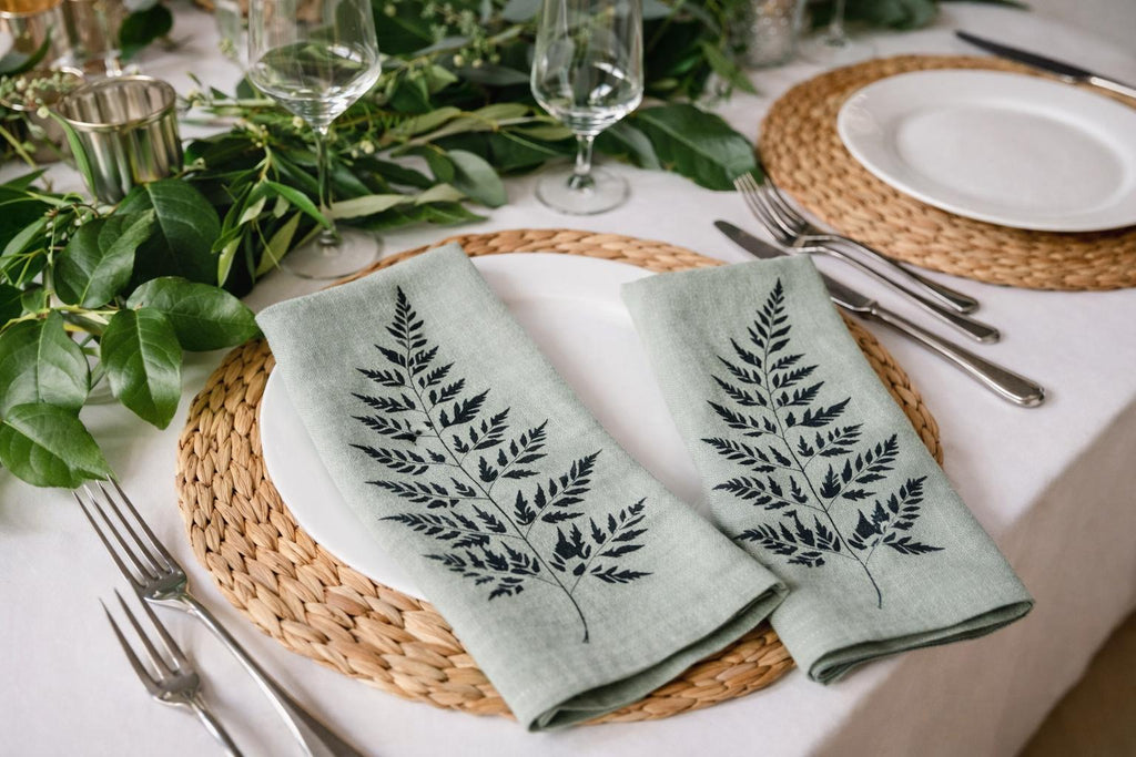 Leafy Fern-Green Smoke Linen Napkin Set of Two