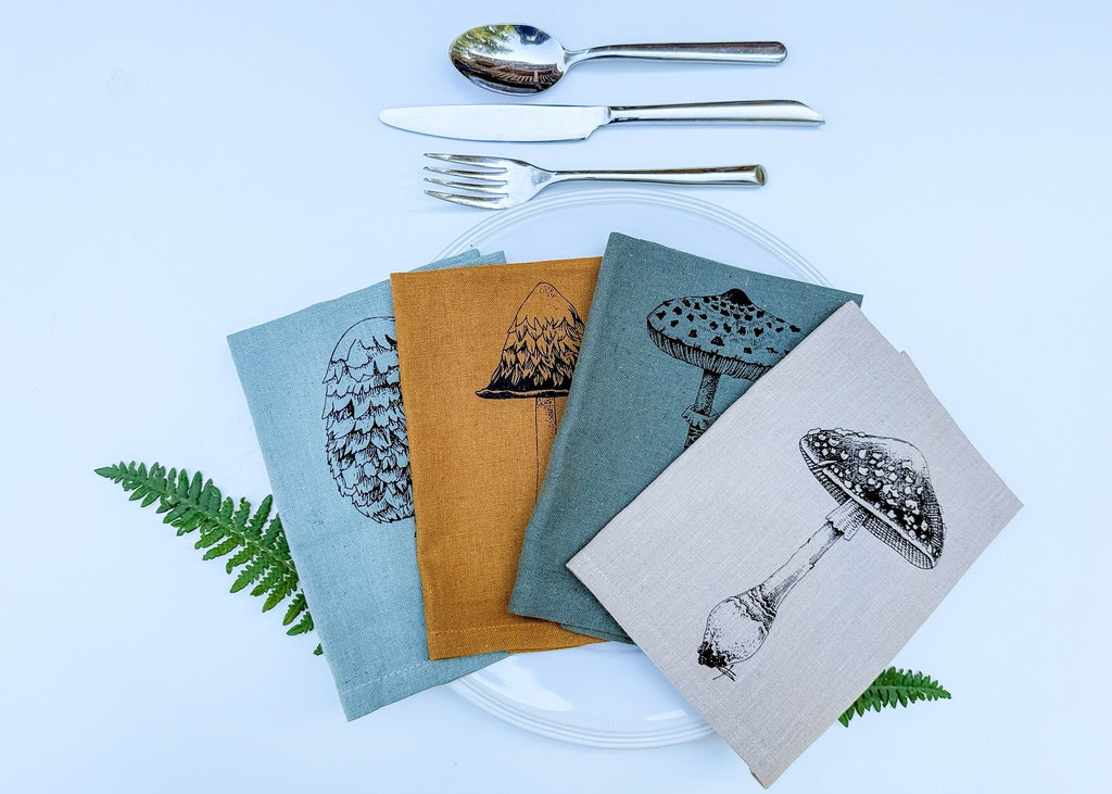 15"x15" printed on a linen/cotton organic fabric in coordinating colours.