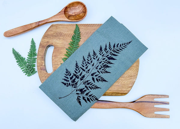 Leafy Fern Linen Tea Towel-Green Smoke