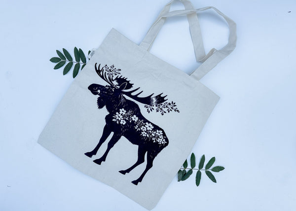 Floral Moose Simple Tote Bag