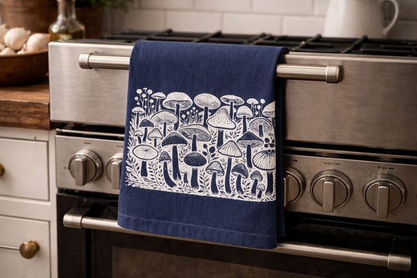 Field of Mushrooms Navy Linen/Cotton Tea Towel
