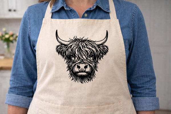 Adjustable Bib Apron Highland Cow