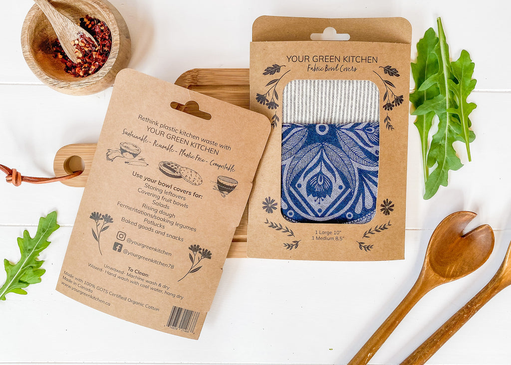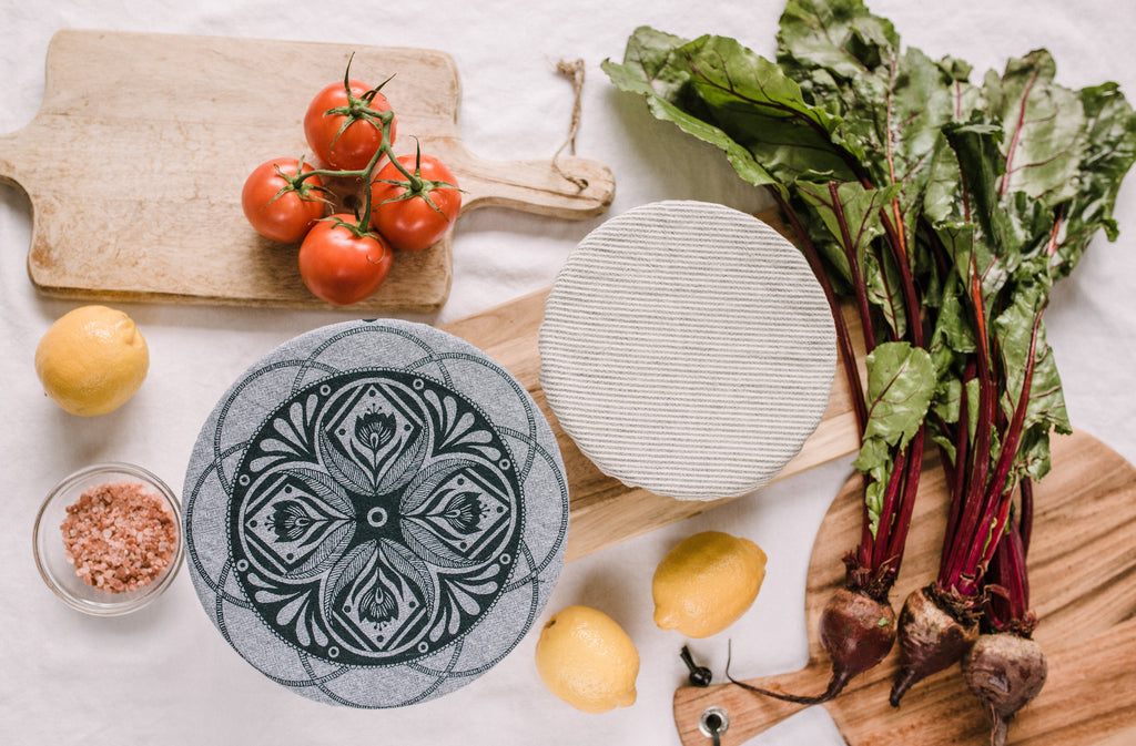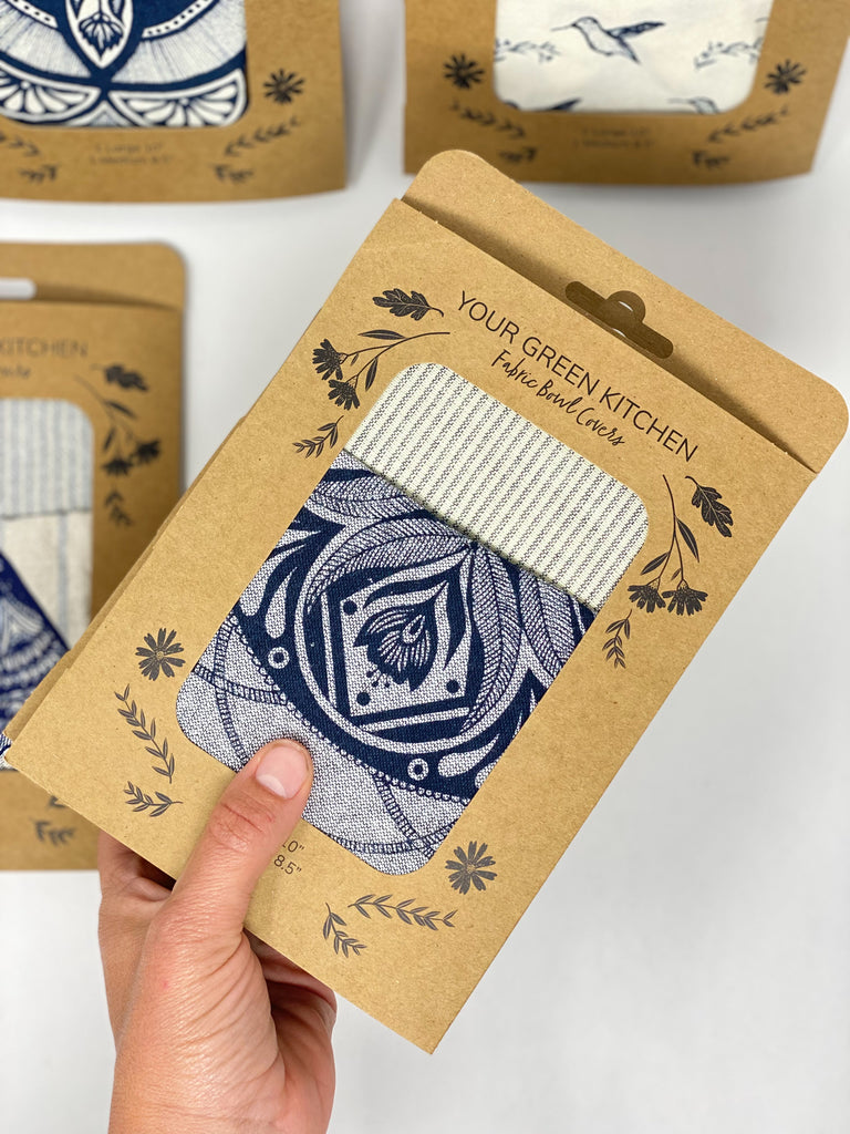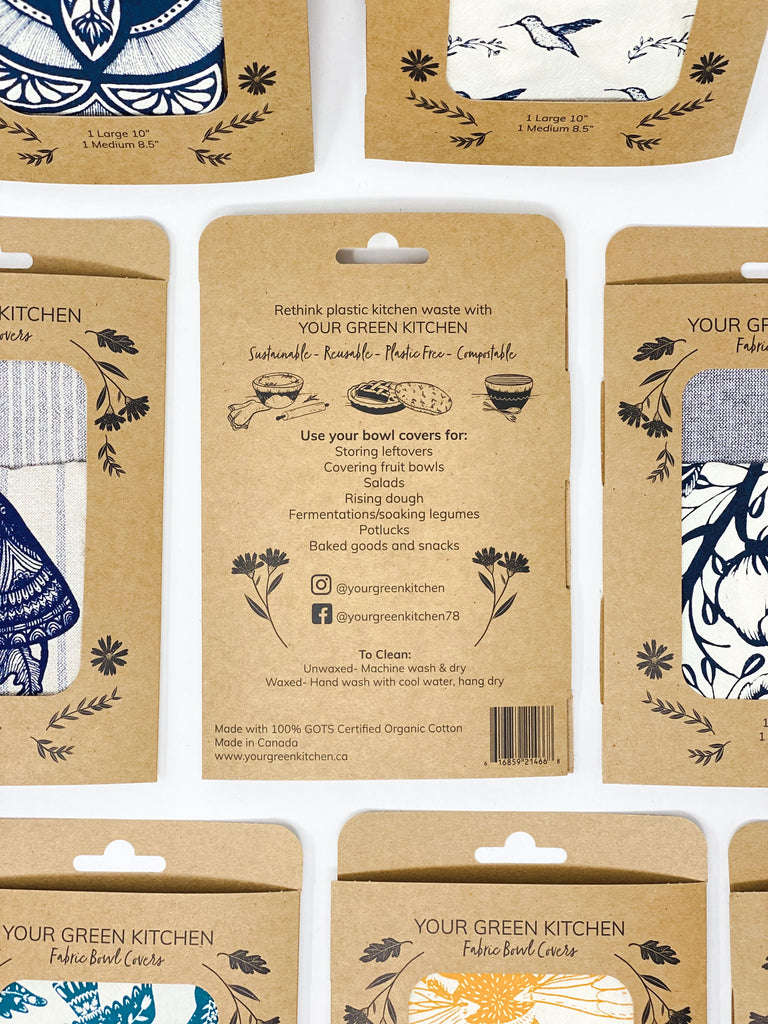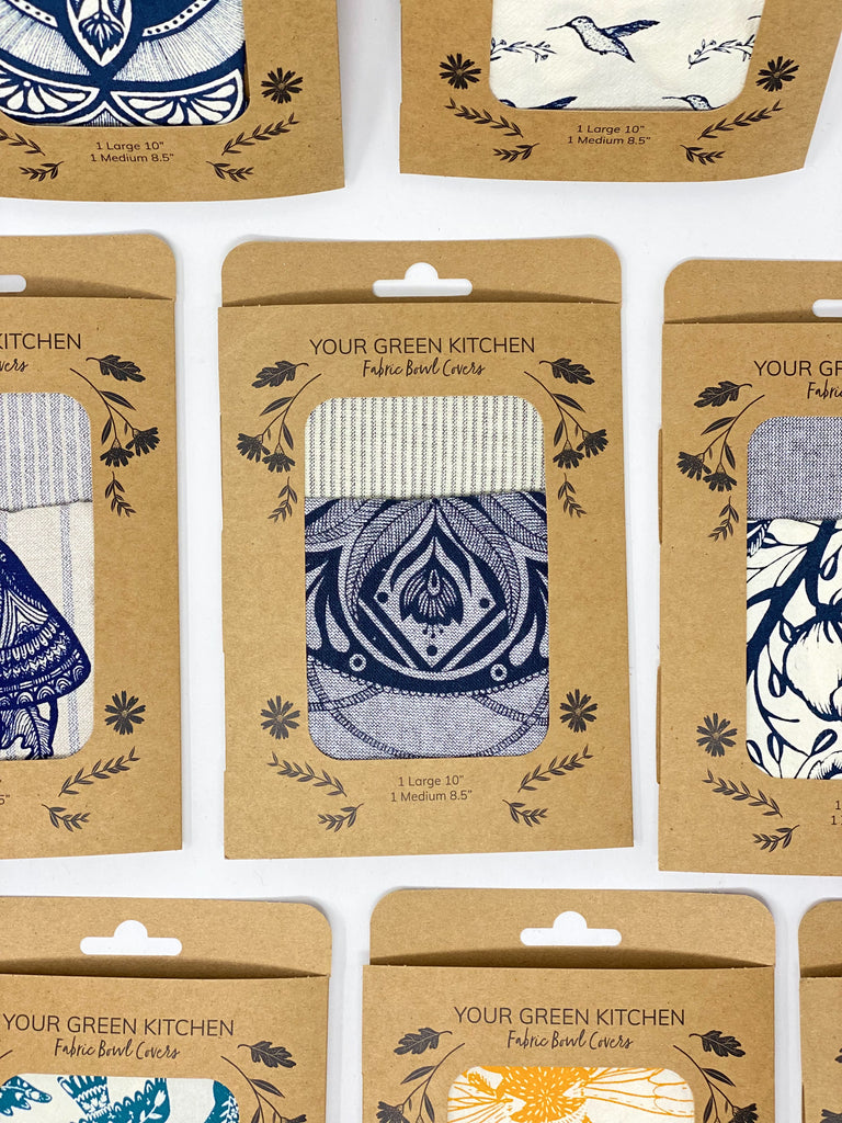 / PACKAGED set of 2 bowl covers/ UNWAXED/ Med and Lg/ Noliah Vienna
