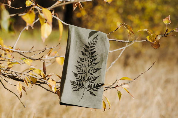 Leafy Fern Linen Tea Towel-Green Smoke