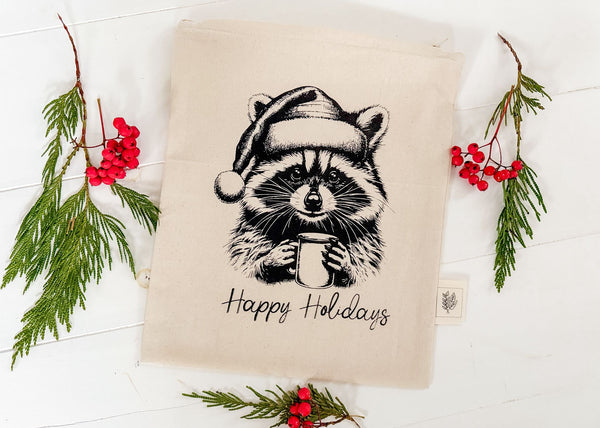 Holiday Woodland Raccoon Medium Gift Zipper Bag